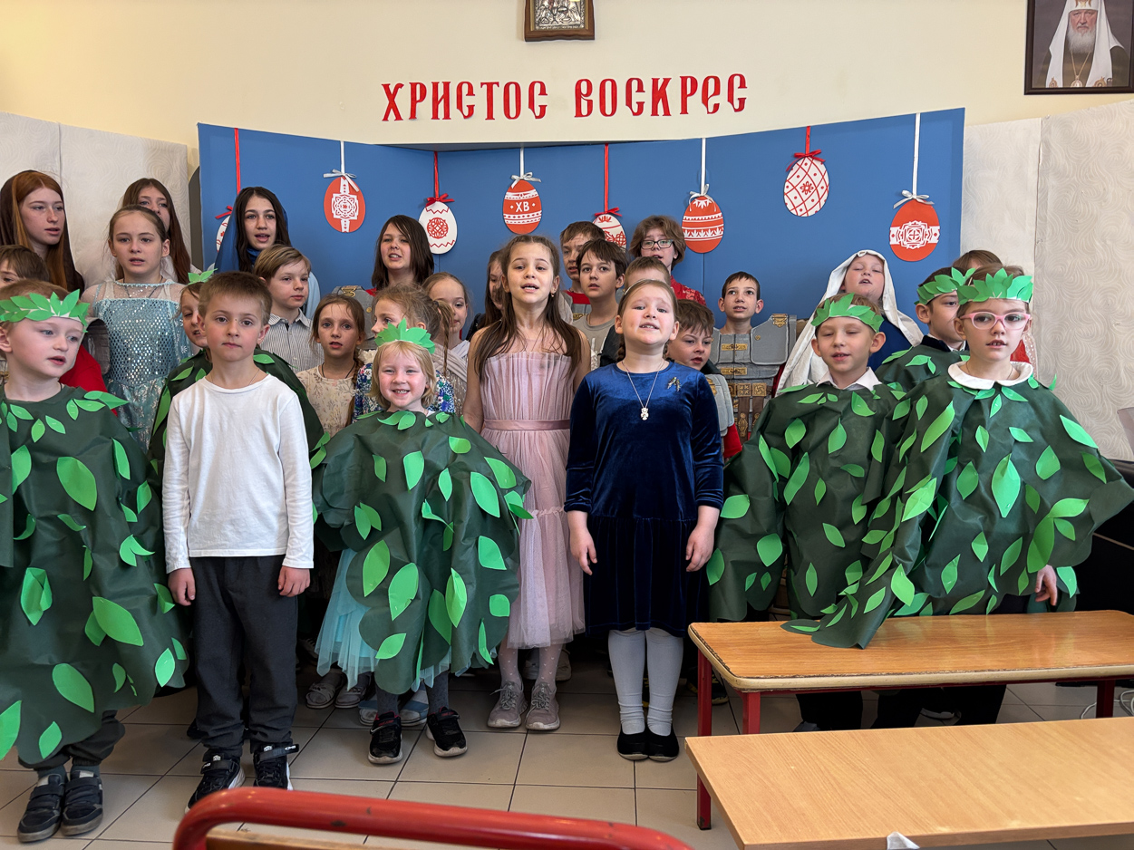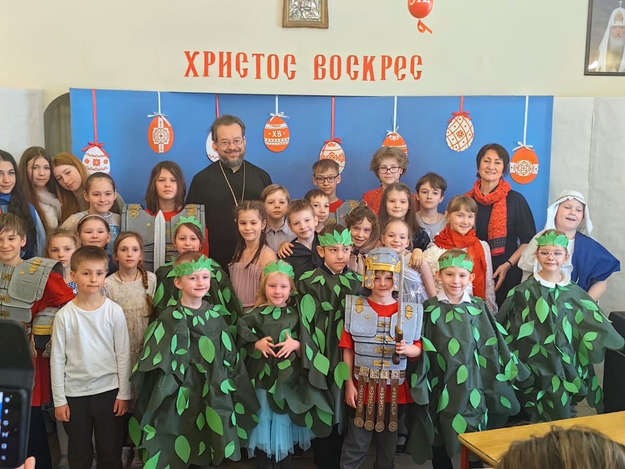 Во время праздничного концерта ученики воскресной школы показали все свои таланты: читали стихи, пели песни о Светлом Христовом Воскресении. Прекрасно играли на музыкальных инструментах. А в заключение концерта ребята представили замечательный спектакль по описанным в Евангелии пасхальным событиям.